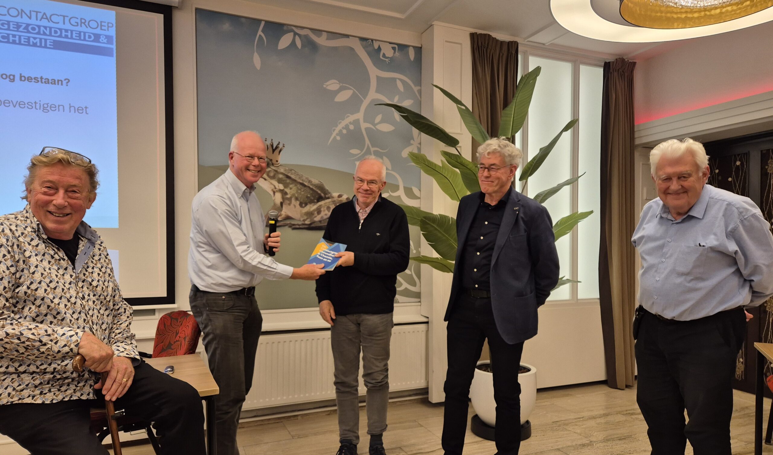 Het “eerste” boekje is uitgereikt aan één van de CGC-ers van het eerste uur na afloop van de reguliere CGC bijeenkomst op 20 november a.s. in Hotel Central, Burgemeester Loeffplein 98, 5211 RZ ‘s-Hertogenbosch (https://www.hotelcentral.nl). De reguliere CGC bijeenkomst startte om 13:30 en had als thema “effectieve beheersmaatregelen” (zie voor het programma: https://www.contactgroep-gezondheid-en-chemie.nl/). De lancering van het boek over de geschiedenis van de CGC vond plaats vanaf 16.00, waarna er een borrel was om na te praten.